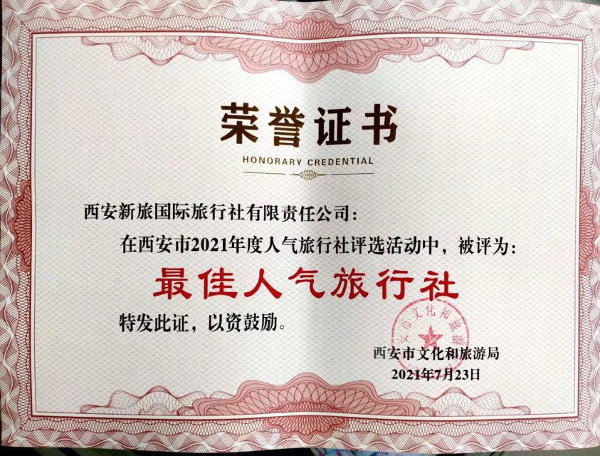 西安新旅國際旅行社被評為質(zhì)量誠信重點推薦單位