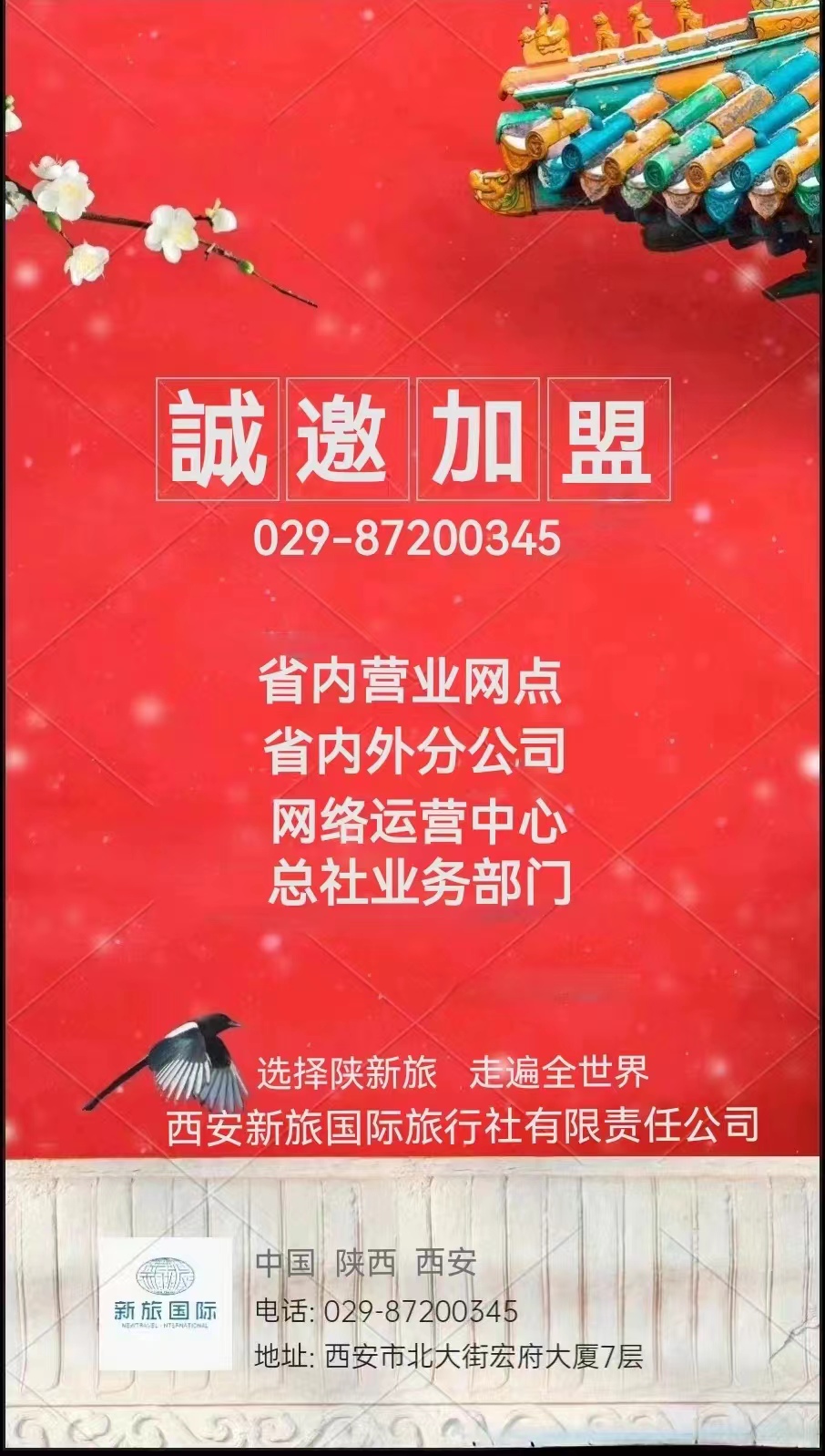 歡迎各地的有識之士能加盟到我們團(tuán)隊中來,資源共享、共謀發(fā)展!為旅行創(chuàng)造精彩,讓游客感動生活;選擇陜新旅,走遍全世界!