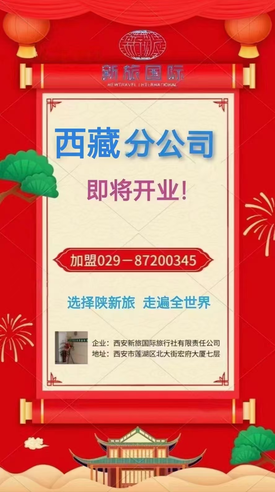 西安新旅國際旅行社有限責(zé)任公司西藏分公司 即將開業(yè)