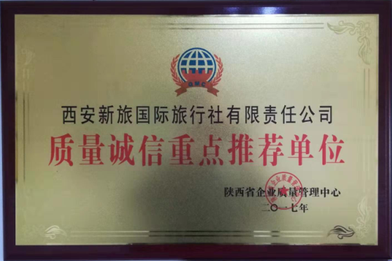 4、口碑良好,信譽(yù)保證。西安新旅國(guó)際旅行社是中國(guó)旅行社協(xié)會(huì)會(huì)員單位,陜西省《質(zhì)量誠(chéng)信重點(diǎn)推薦單位》和《陜西省AAA級(jí)信譽(yù)單位》,西安市旅游局推薦的《旅行社責(zé)任保險(xiǎn)全國(guó)統(tǒng)保示范項(xiàng)目參保單位》。在國(guó)內(nèi)外游客中和旅游業(yè)中有良好的認(rèn)同感和好評(píng),在國(guó)際上建立了良好的口碑和信譽(yù)!