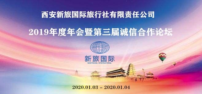 西安新旅國際旅行社有限責(zé)任公司2019年度年會暨第三屆誠信合作論壇於2020年元月3日至4日在盛鑫溫泉假日酒店舉行,誠邀旅游界同仁及合作伙伴前來參會交流!